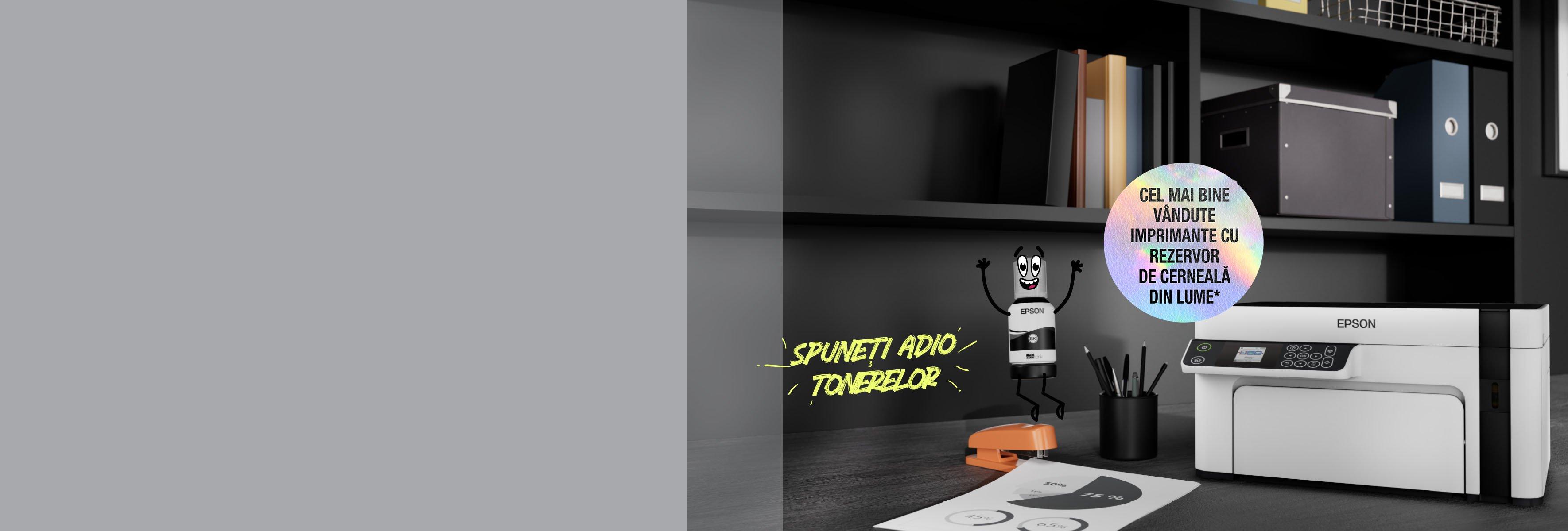2 Număr mediu de cartușe de toner pentru imprimarea unui număr de pagini utilizând recipientele de cerneală incluse din gama EcoTank monocromă. Comparație realizată între volumul mediu de imprimare cu recipientele de cerneală incluse din gama EcoTank monocrom din 2019 și volumul mediu de imprimare cu cartușele de toner originale incluse și de rezervă pentru cele mai bine vândute 10 modele de imprimante monocrome cu laser (categoria cu viteze până la 20 ppm) din Europa Centrală și de Est, Orientul Mijlociu, Africa, în intervalul ianuarie - decembrie 2018. Volume de imprimare ale tonerelor așa cum au fost acestea comunicate pe site-urile web ale producătorilor.
