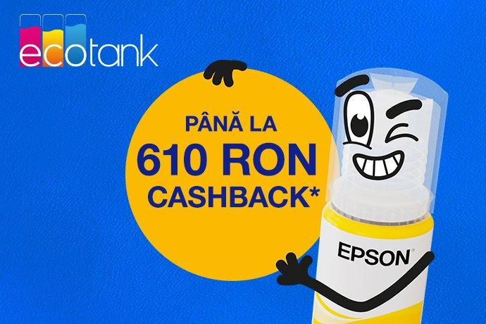 Primiți până la 610 RON cashback la imprimantele EcoTank participante când achiziționați în perioada 01.01.2026 – 31.03.2026